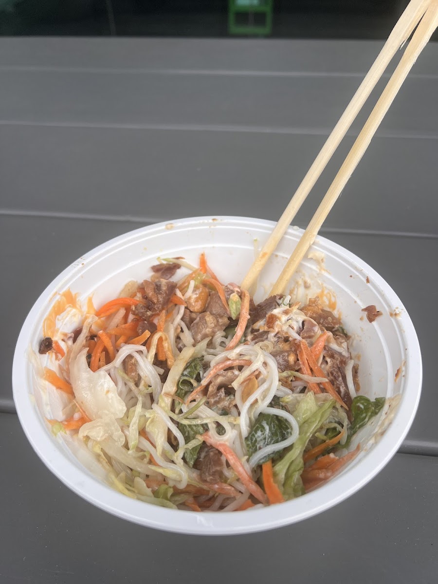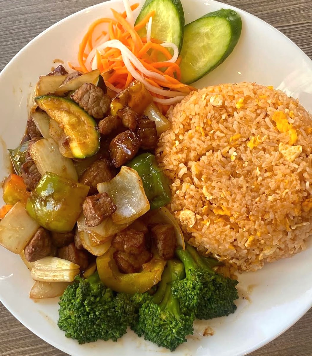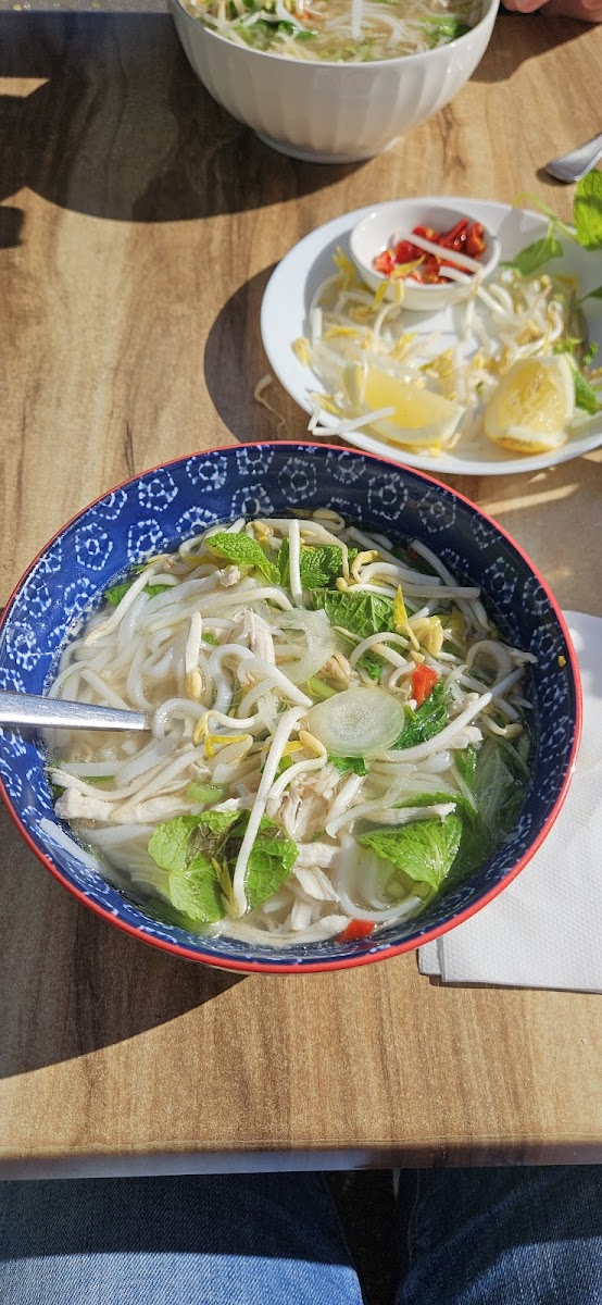 The real draw here is the pho—both the chicken and the sliced rare beef versions stand out for their clean, fragrant broths and fresh ingredients, staying true to traditional Vietnamese flavors. Beyond pho, the menu features a variety of fried rice dishes and a handful of sweet treats like banana bread and muffins, adding options for those who want a little variety or a simple dessert to finish.